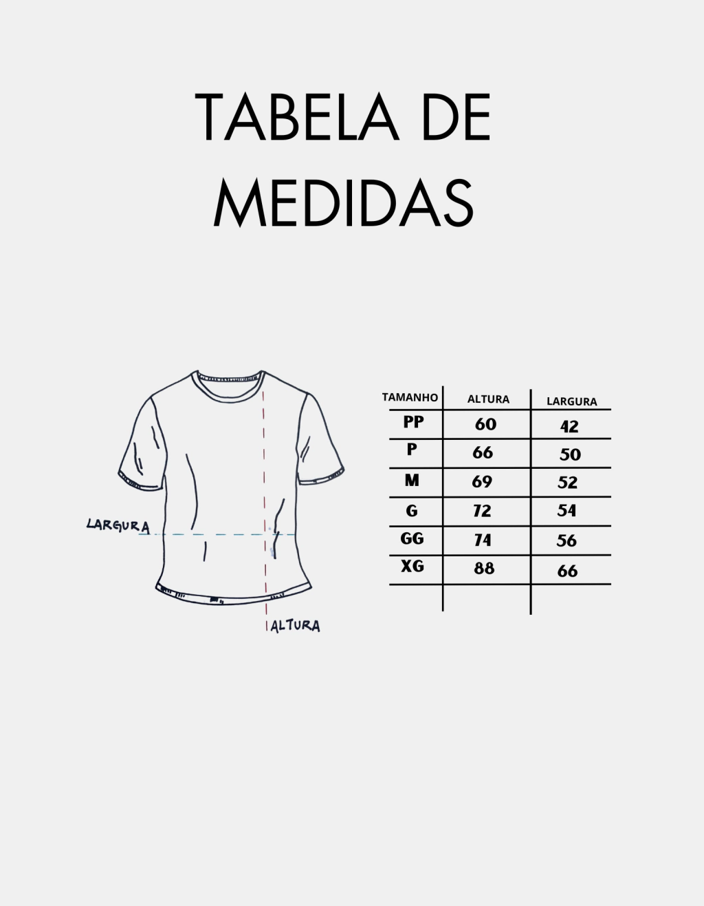 - Tecido: 100% algodão fio 30.1 penteado premium com reforço ombro a ombro e cobre gola